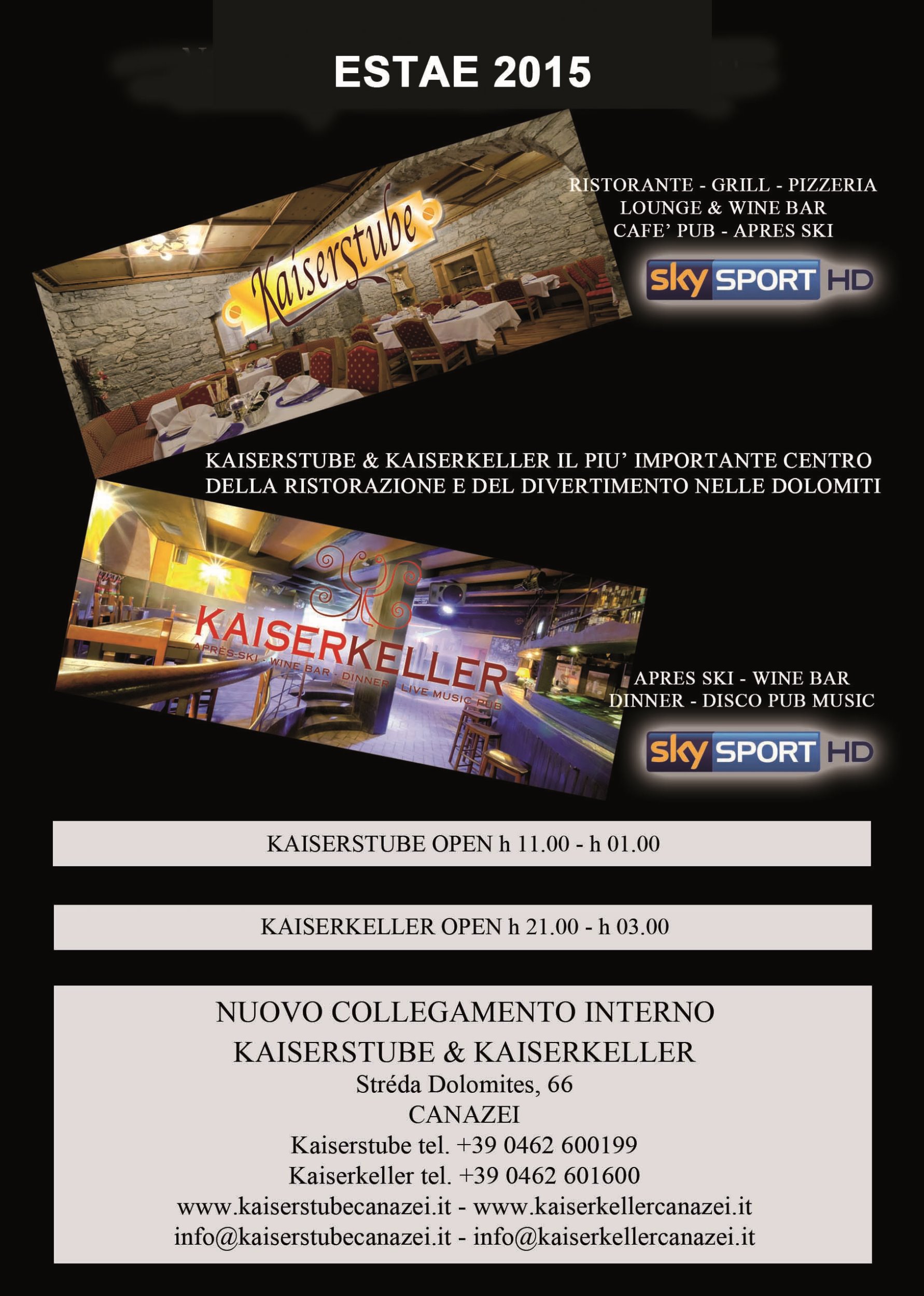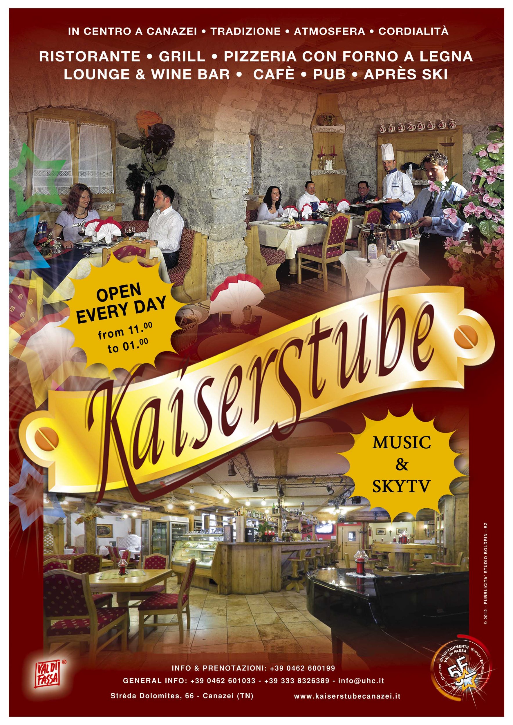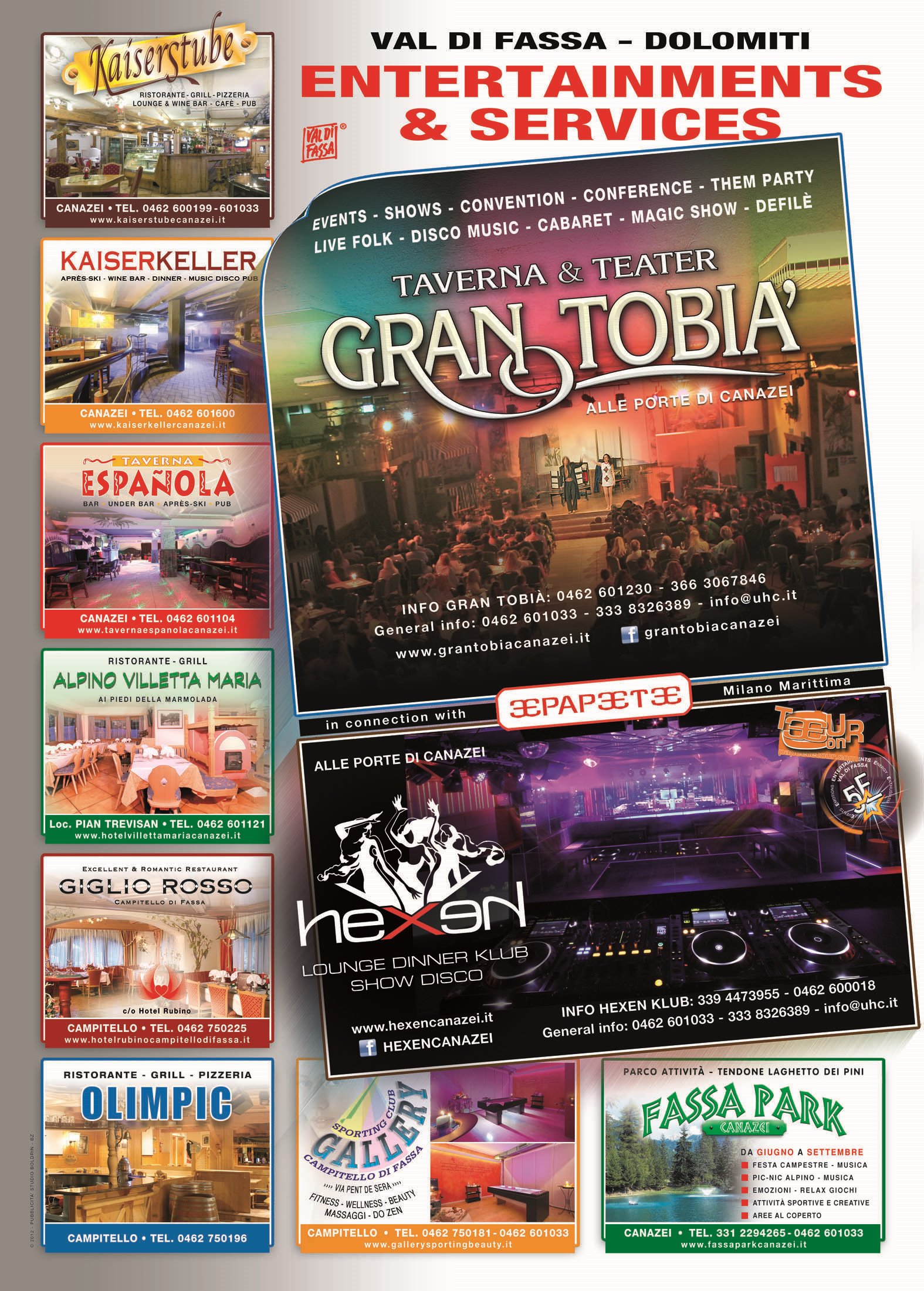 Gran Tobià Hexen Klub Canazei Sky Bar Caminetto Kaiserstube Kaiserkeller Taverna Espanola Giglio Rosso Ristorante Alpino Fassa Park